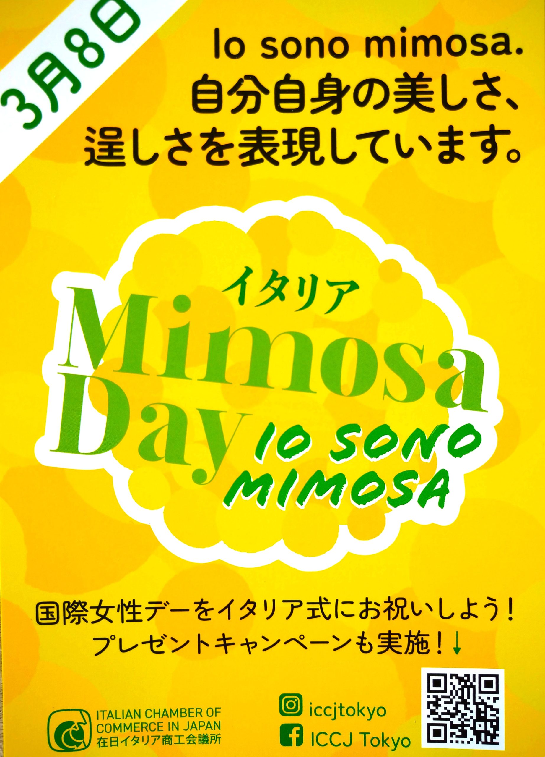 わたしたちは在日イタリア商工会議所主催の当イベント「イタリア Mimosa Day “Io sono mimosa”」に参加することで、イタリア式国際女性デー「ミモザの日」の文化をイタリア料理を通して広め、日伊文化交流の160周年とこれからを祝福したいと思います。